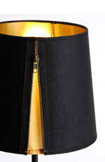 Description générale: Abat-jour noir intérieur Or à fermeture à glissière doré avec un volet en taffetas Or.